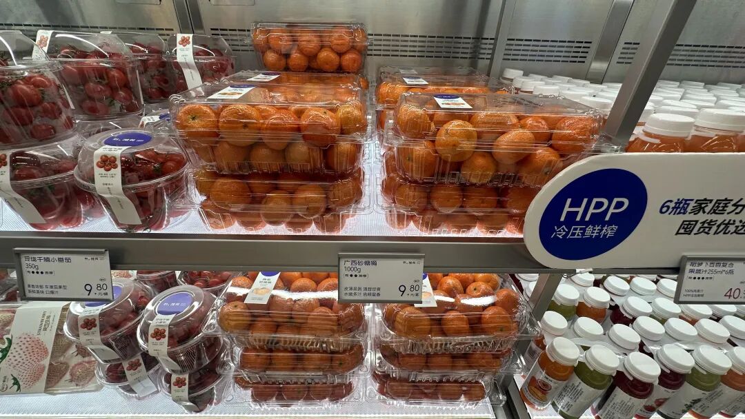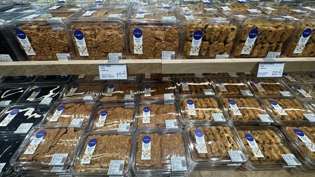 比如,鮮鹵區(qū)的鴨頭、鴨脖,選用大號一級原料,鹵制配方獨特,口感遠(yuǎn)超傳統(tǒng)鹵味品牌;烘焙區(qū)的伯爵瑞士卷,無菌蛋液添加量超40%,使用動物奶油,媲美高端烘焙店;現(xiàn)制飲品區(qū)的HPP冷壓果蔬汁,采用泰國進(jìn)口椰青、海南小臺芒等原料,既要保證新鮮又要控制損耗;新中式糕點區(qū)的黑芝麻薄脆、瓜子仁脆,采用透明包裝,讓消費者直觀看到原料品質(zhì);堅果區(qū)的紫衣腰果、奶香味夏威夷果,延續(xù)了山姆的大罐裝、高性價比邏輯,卻以更適合購物中心場景的小包裝呈現(xiàn)。