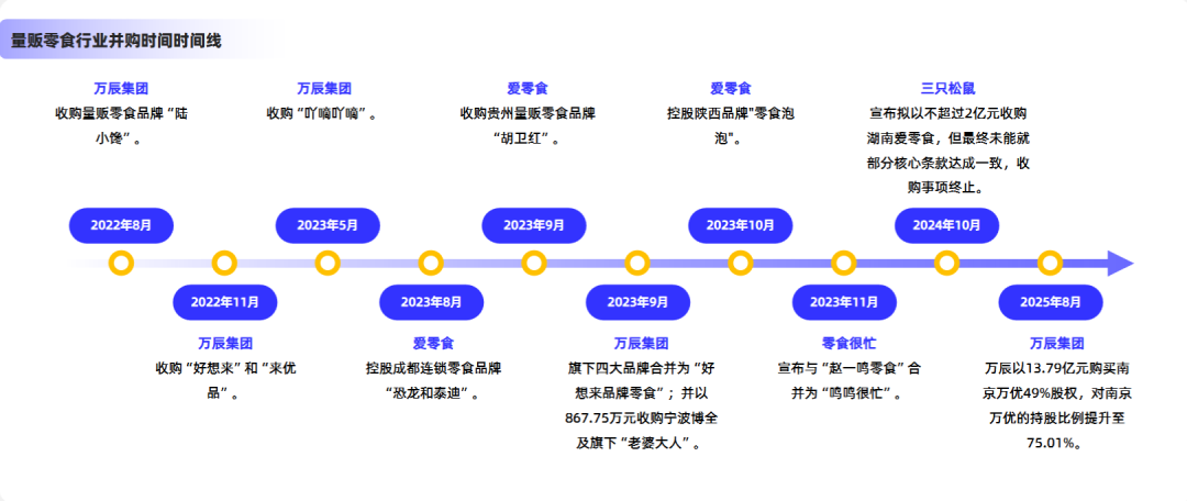 量販零食行業(yè)已行至中局,雙寡頭格局讓中小品牌的生存愈發(fā)艱難。無論是尋求收購、牽手平臺,還是抱團取暖,都是中小品牌在夾縫中的求生嘗試,行業(yè)并購與合縱連橫的節(jié)奏還將持續(xù)加快。