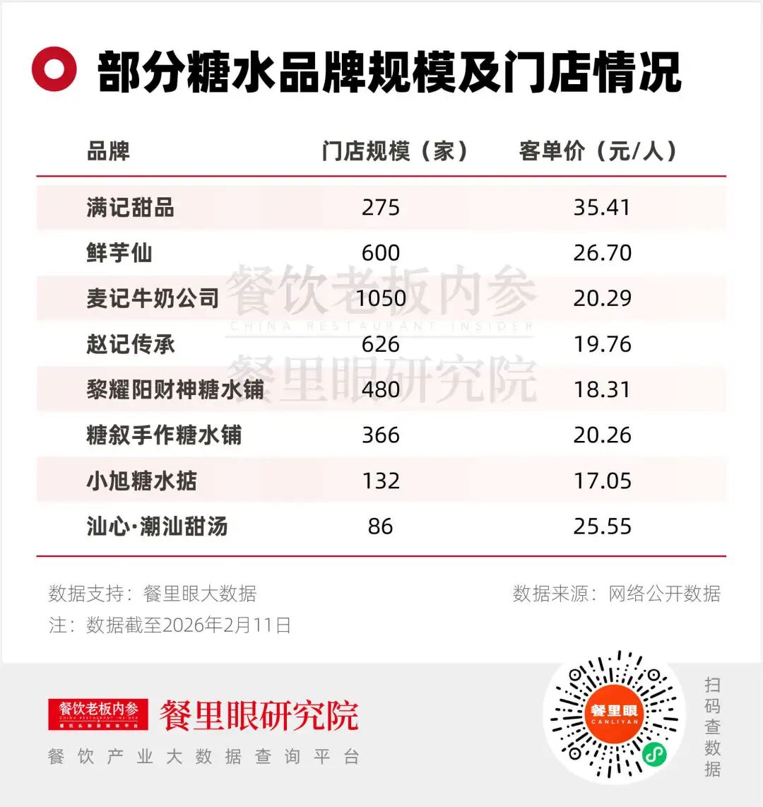 成立于2024年、主打潮汕甜湯的汕心,已在北京上海等地開出86家門店;江西品牌糖敘的門店已突破366家,其中2025年新開的門店約占九成。