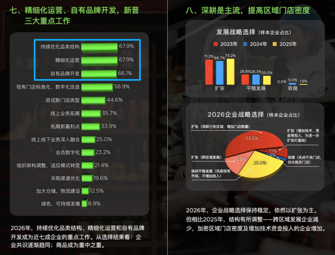 根據(jù)中國連鎖經(jīng)營協(xié)會調(diào)查顯示,企業(yè)對2026年的三大工作重點(diǎn)高度集中: