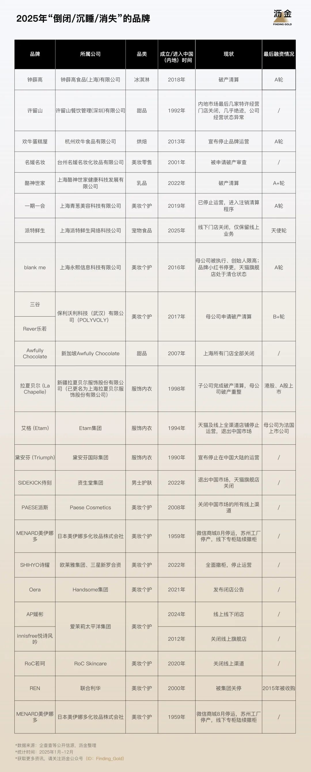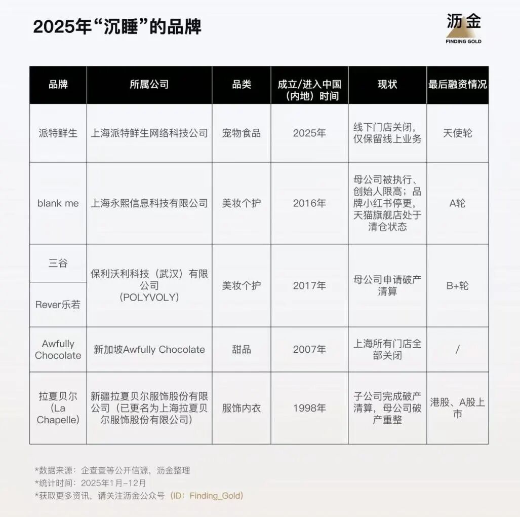 要么是工商系統(tǒng)顯示經(jīng)營異常,要么是沒有明確宣布關(guān)閉,但官微、公眾號(hào)停更超過6個(gè)月,主要渠道(網(wǎng)店、線下門店等)關(guān)停。