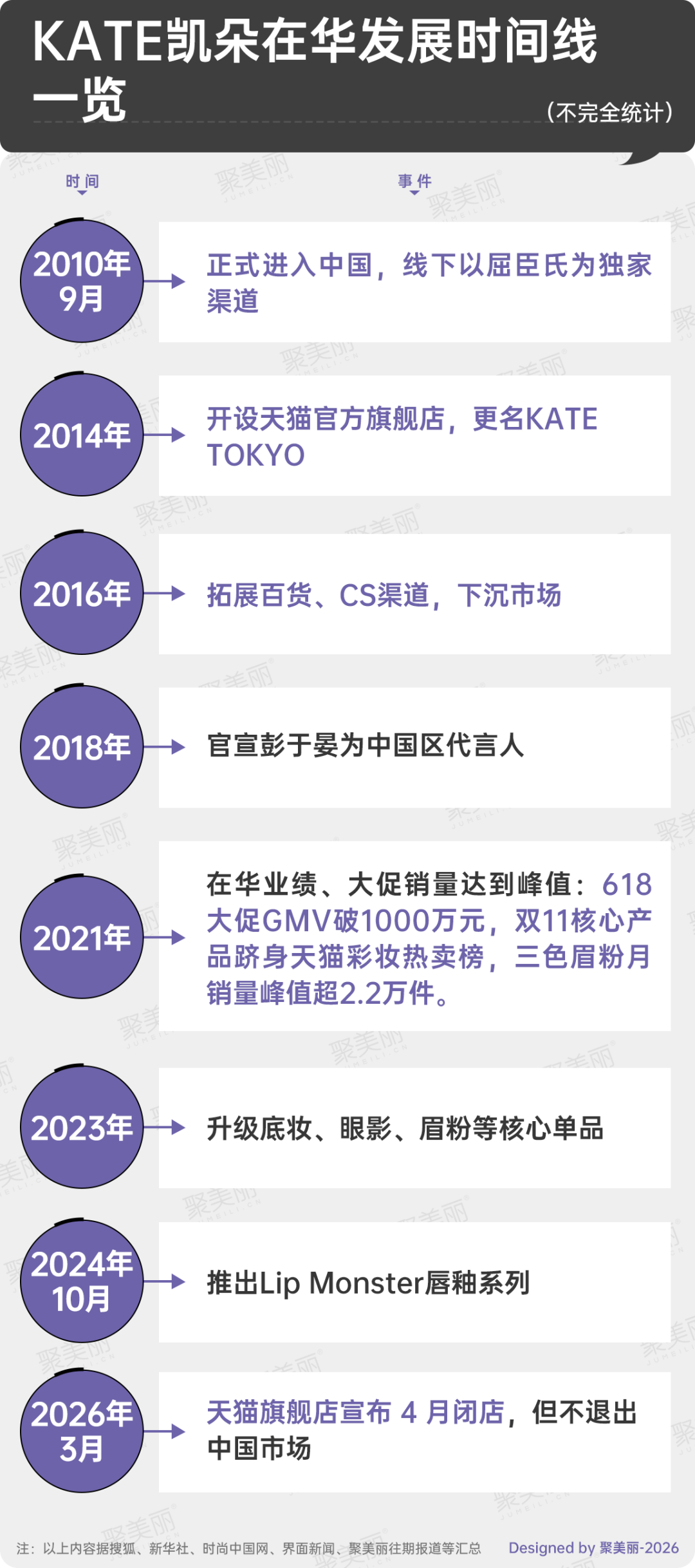 信息來源:KATE天貓旗艦店、抖音、京東、小紅書、聚美麗往期報道、金融界、搜狐網(wǎng)、界面新聞、KATE官網(wǎng)、花王官網(wǎng)等。