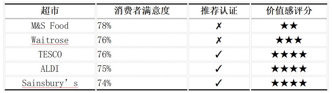 但在同一份榜單中,瑪莎百貨卻沒有獲得推薦認證,原因只有一個:價值感評分不足。