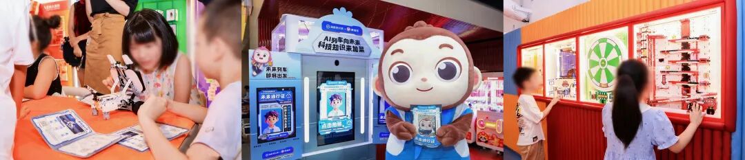 在親子場景中,門店對兒童樂園進(jìn)行了全面升級:聯(lián)合猿編程設(shè)置了四大編程游戲裝置,并與斑馬設(shè)計(jì)了 “斑馬 AI 學(xué)” 六大互動模塊,將 AI 教育融入娛樂體驗(yàn)。