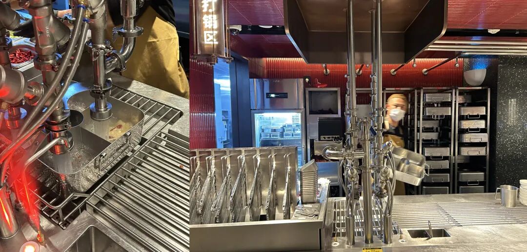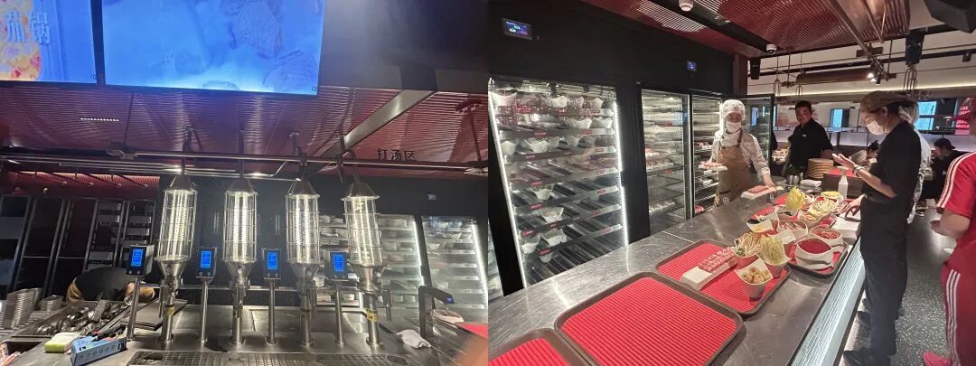 此次海底撈創(chuàng)新概念店,則將 “透明化” 貫徹到底 —— 不僅食材可溯源,出餐流程也全程可見。從菜品出品到鍋底調(diào)配,均為現(xiàn)場操作、現(xiàn)打現(xiàn)出,整個(gè)過程完全置于顧客視線之下。