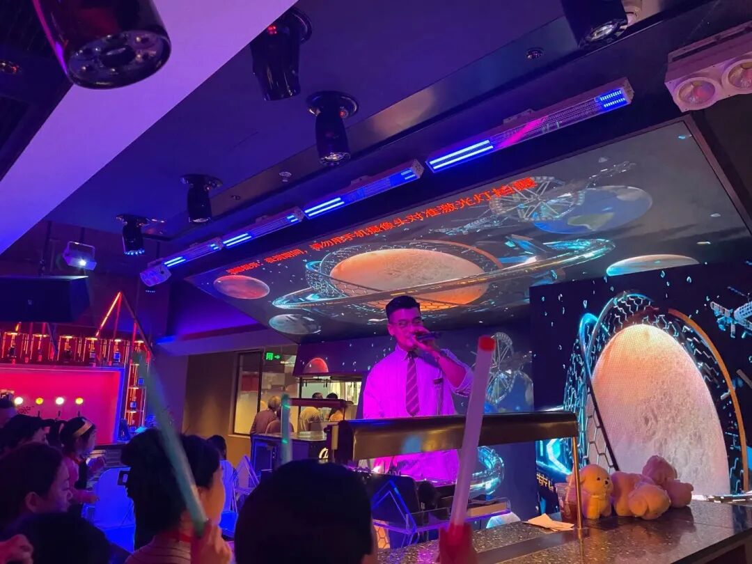 每晚20:30和22:30,DJ互動表演準(zhǔn)時(shí)開場,顧客可在吧臺近距離體驗(yàn);工作人員還會發(fā)放熒光棒、組織合唱,營造熱烈的社交氛圍。