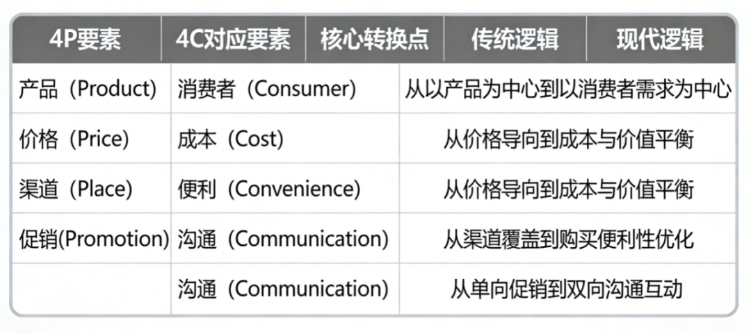 然而,若從顧客導(dǎo)向的4C(Customer、Cost、Convenience、Communication)模型重新審視,會更清楚看見其本質(zhì)。