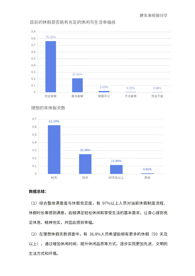 理想休假天數(shù):62.24%的員工認(rèn)為40天為理想時(shí)長(zhǎng),36.84%希望增加至50天及以上。