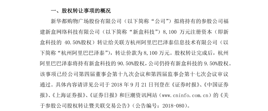 此后兩年,盒馬又以類(lèi)似模式進(jìn)入福建、貴州、海南等地:2017年9月,阿里巴巴入股新華都,成為其第二大股東,雙方共同出資2億元設(shè)立福建新盒網(wǎng)絡(luò)科技有限公司,各持股50%,在福建當(dāng)?shù)剡\(yùn)營(yíng)盒馬鮮生;2018年2月,阿里系公司與貴陽(yáng)星力簽署協(xié)議,設(shè)立貴州星盒縱橫網(wǎng)絡(luò)科技有限公司,雙方各自持股50%,負(fù)責(zé)在貴陽(yáng)經(jīng)營(yíng)盒馬門(mén)店;2018年9月,盒馬與大潤(rùn)發(fā)合作,在海南?趪(guó)貿(mào)開(kāi)設(shè)了首家門(mén)店。