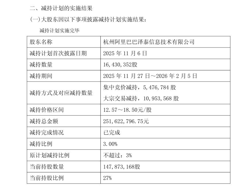 此外,阿里巴巴的資產(chǎn)調(diào)整戰(zhàn)略也為雙方合作的終止埋下了伏筆。從2024年開(kāi)始,阿里巴巴就在出售或減持旗下多項(xiàng)非核心及傳統(tǒng)實(shí)體零售資產(chǎn),快狗打車(chē)、嗶哩嗶哩、網(wǎng)易云、麗人麗妝、銀泰百貨、高鑫零售等企業(yè)的股份交易也逐步落地。針對(duì)三江購(gòu)物,阿里也啟動(dòng)了退出進(jìn)程,自2025年8月起陸續(xù)減持股份,截至2026年2月6日,已減持5%股份,持股比例降至27%,雙方合作的基礎(chǔ)也隨之弱化。