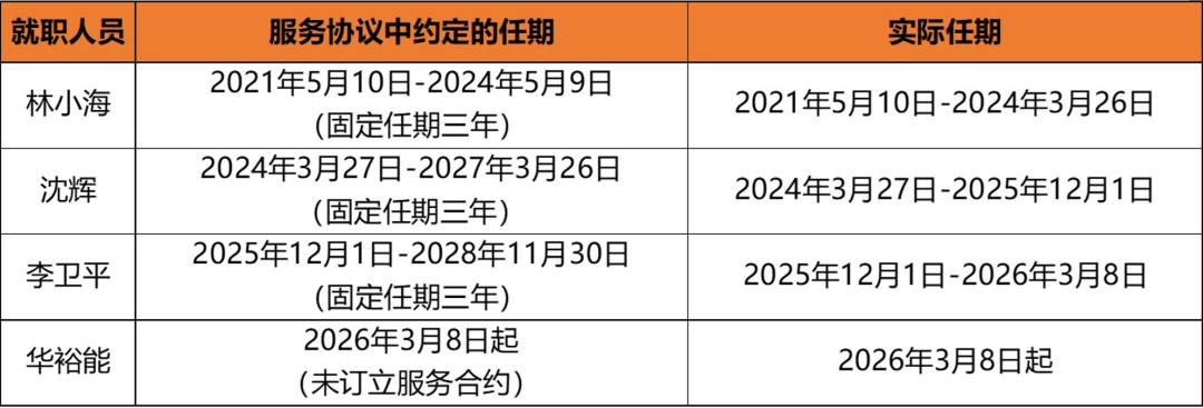 其中,僅有林小海完整履行了三年任期。林小海的接替者沈輝“臨危受命”,但在任期近半時因“家庭事務(wù)”辭職,隨后登場的李衛(wèi)平,更是以意想不到的方式“退場”。