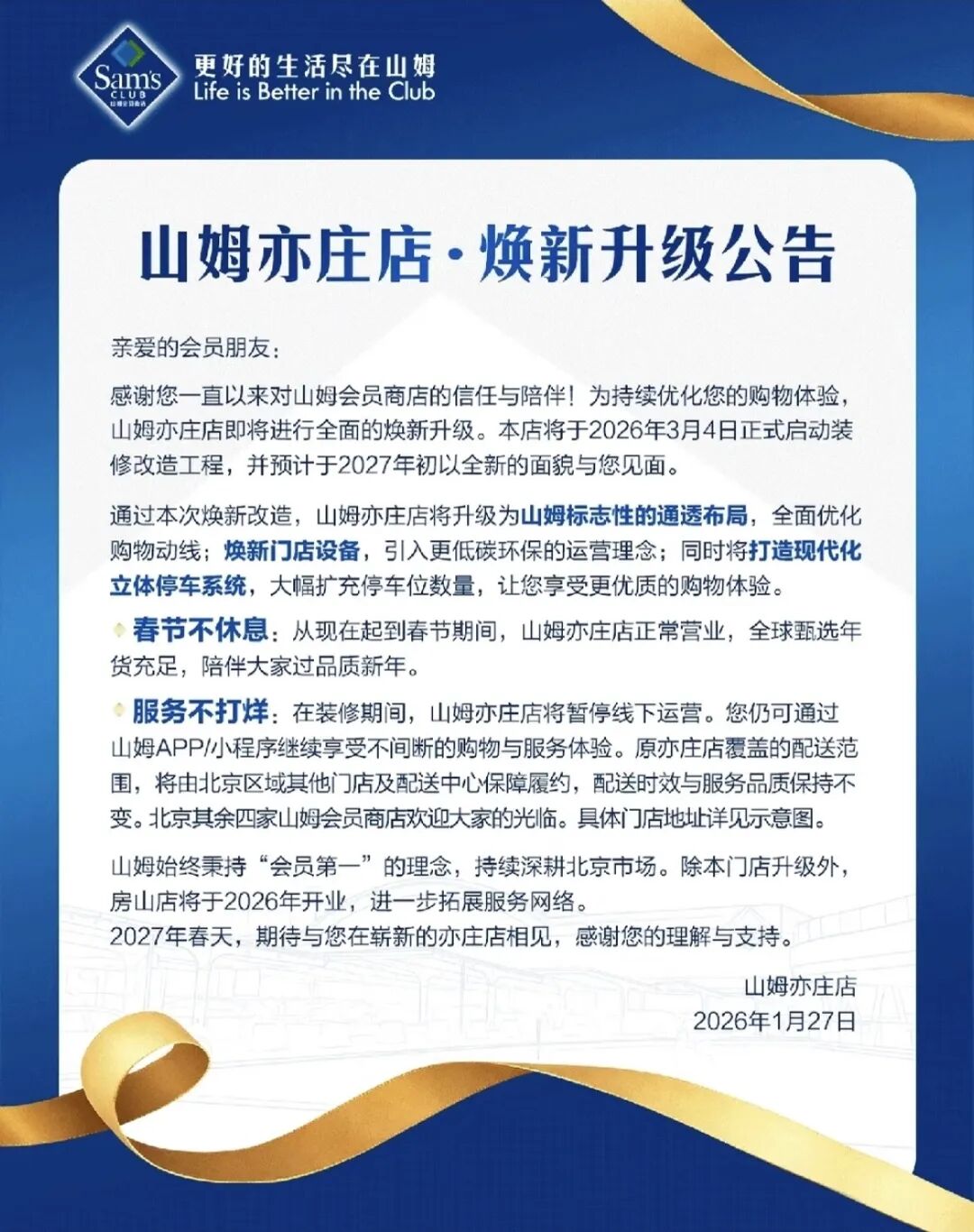 近日,山姆正式宣布,北京山姆亦莊店將啟動全面停業(yè)升級改造,此次改造周期長達一年,是山姆中國首次對單店進行大規(guī)模、系統(tǒng)性、長期停業(yè)調(diào)改,引發(fā)行業(yè)與消費者廣泛關注。