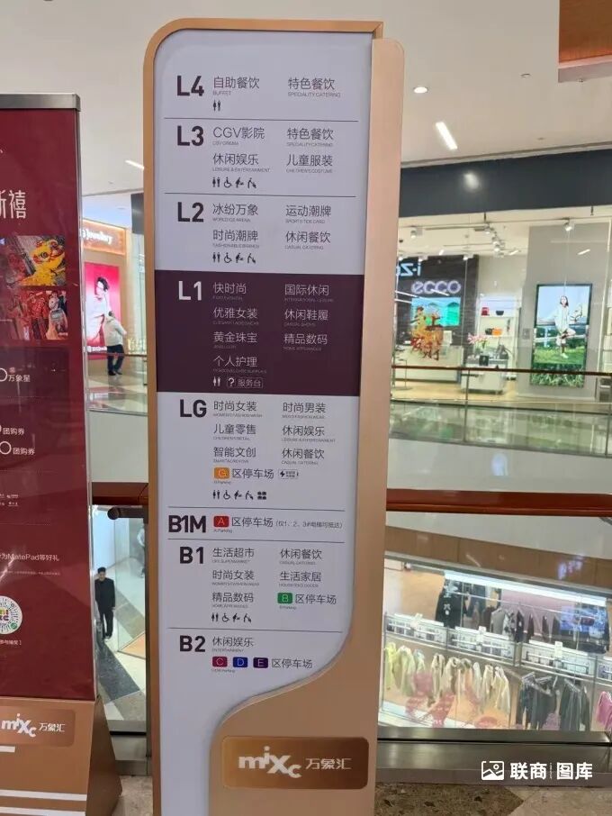 其中B2層主要為停車場(chǎng)(C/D/E三區(qū)),僅兩家休閑娛樂品牌;B1層為B區(qū)停車場(chǎng),商業(yè)由超市、餐飲、女裝、家居、數(shù)碼等業(yè)態(tài)構(gòu)成;LG層為男女裝、兒童零售、餐飲、休閑娛樂、文創(chuàng)及C區(qū)停車場(chǎng);L1至L4為純商業(yè)空間,快時(shí)尚、服飾、餐飲、兒童、數(shù)碼、黃金珠寶、影院等各種業(yè)態(tài)齊備。
