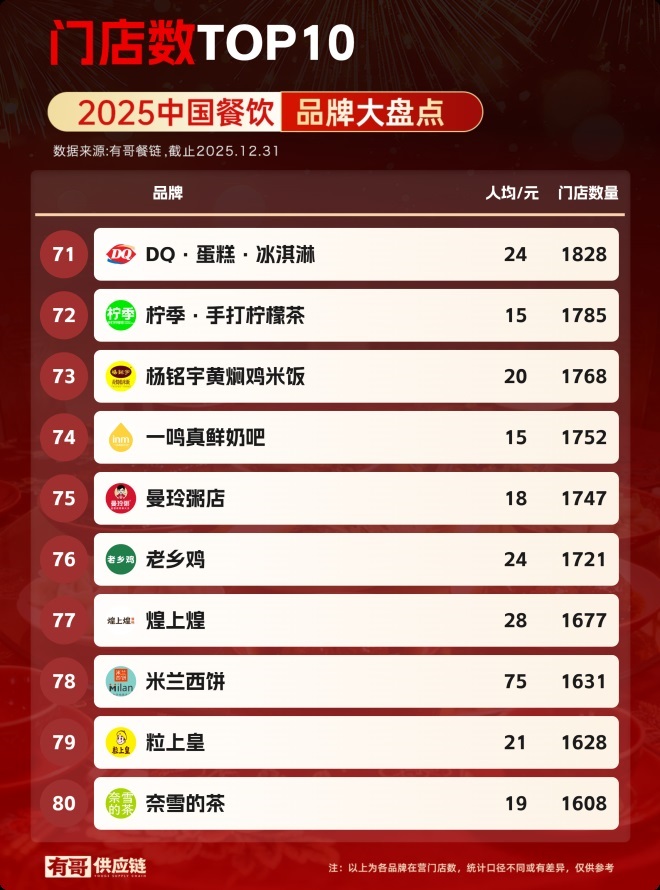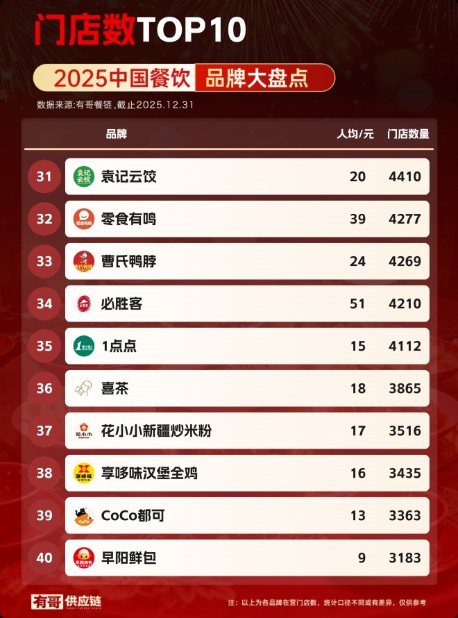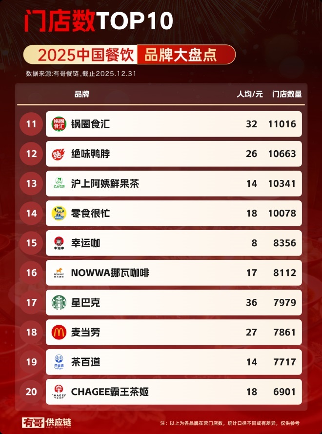 又到了一年一度的餐飲品牌門店總數(shù)盤點(diǎn)時(shí)刻。