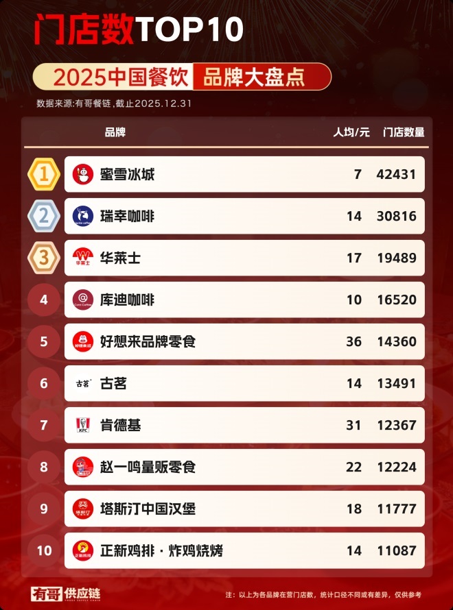 餐飲萬店品牌增至14家,2025年餐飲門店數(shù)據(jù)盤點(diǎn)