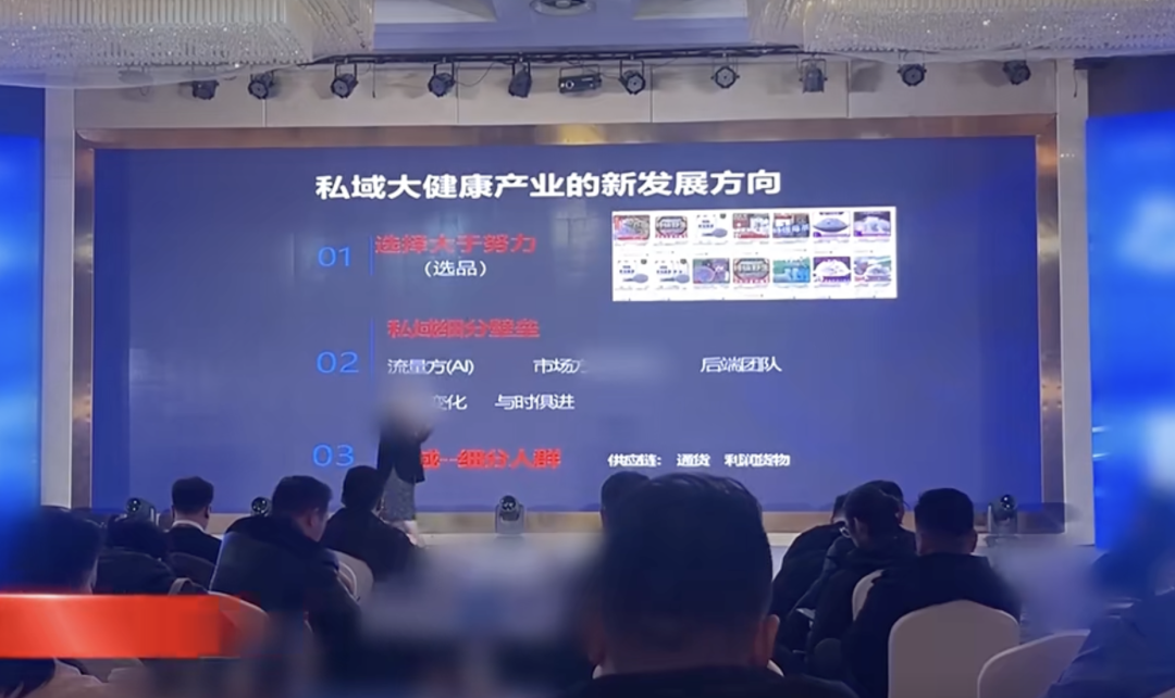 交流會現(xiàn)場,“網(wǎng)絡(luò)視頻制作方”構(gòu)成行業(yè)關(guān)鍵環(huán)節(jié),是私域營銷行業(yè)中的關(guān)鍵環(huán)節(jié)。這些機(jī)構(gòu)從藥企或保健品公司采購低價藥品或保健品,制作健康講座視頻,打包賣給私域營銷公司,后者通過社交平臺引流,在私域場景高價銷售。產(chǎn)品成本低廉,售價卻被哄抬數(shù)倍。