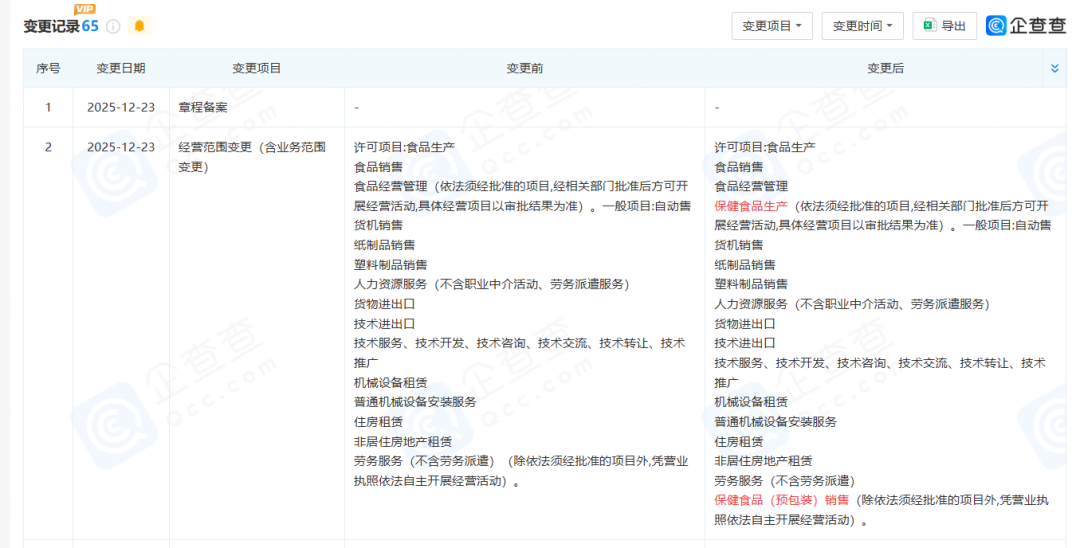 此外,去年底,香飄飄對經(jīng)營范圍進(jìn)行變更,新增“保健食品生產(chǎn)”及“保健食品(預(yù)包裝)銷售”兩項(xiàng)業(yè)務(wù)。這意味著,香飄飄或?qū)⒖缃缟孀惚=∈称沸袠I(yè)。
