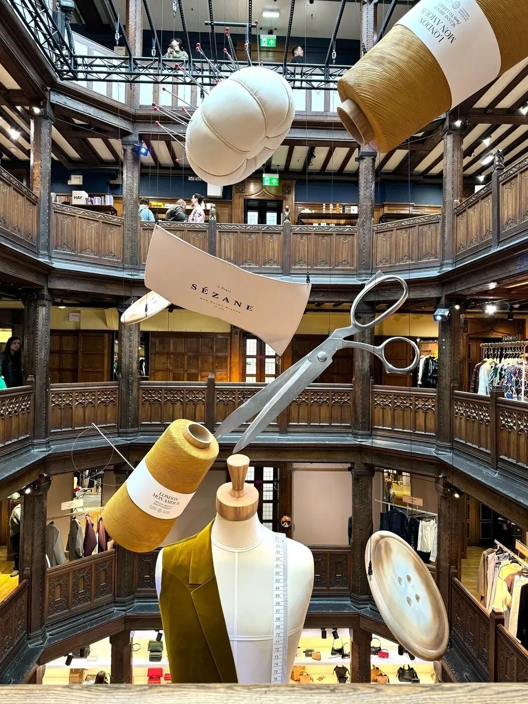 Liberty的建筑木材取自皇家戰(zhàn)艦,商場(chǎng)內(nèi)部的挑空中庭、木雕花欄桿和拱頂結(jié)構(gòu),都在還原中世紀(jì)都鐸建筑的宏偉和精致。