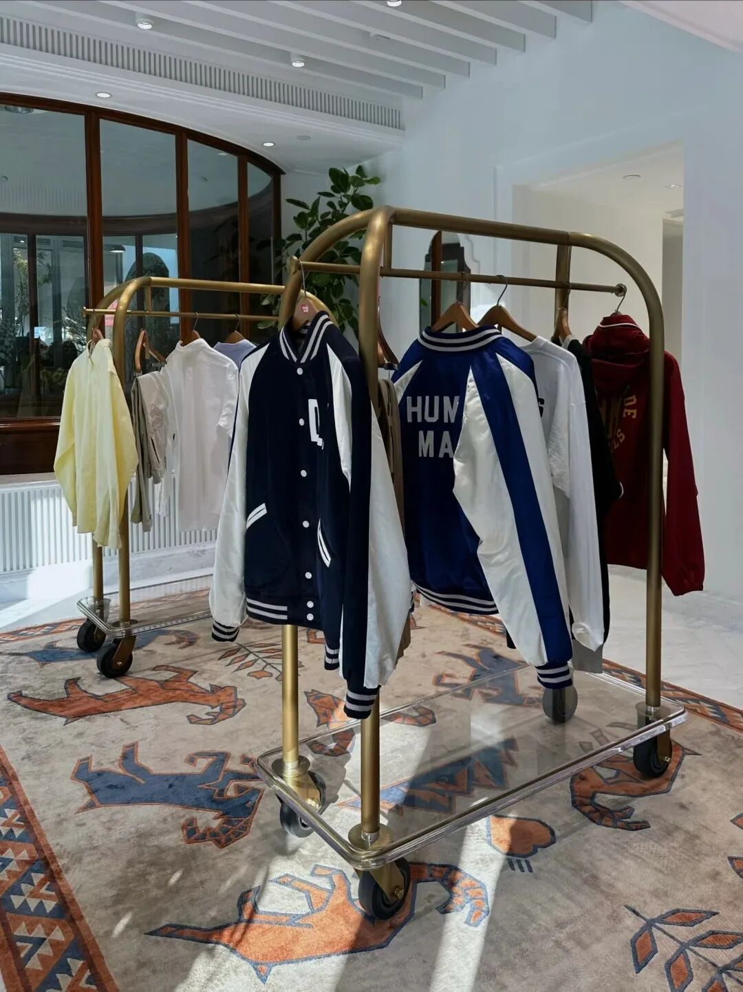 風(fēng)格輕松的日潮品牌HUMAN MADE選址在酒店大堂,衣架還在延用酒店推車;獨(dú)立書店里,家庭親子客群占比更多。這里的花店、Brunch、烘焙和咖啡,都有各自的風(fēng)格呈現(xiàn),整體氛圍是輕松活力的,但又都自然融入到老酒店的背景之中。