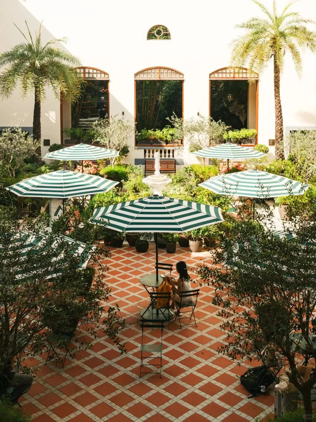 影灣園穿越時(shí)間的歲月感,在張愛玲文學(xué)IP加持下,成為體驗(yàn)純正港味的一方天地。酒店里跨世紀(jì)的老物件都被保留下來:噴泉水池、旋轉(zhuǎn)樓梯、門頭紋章……庭院里擺放的綠白遮陽(yáng)傘、折疊椅和小圓桌,還在呼應(yīng)老淺水灣酒店的優(yōu)雅下午茶時(shí)光。