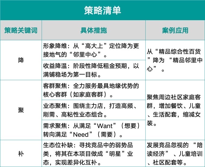基于調(diào)研結(jié)論,制定新戰(zhàn)略,核心是“降、聚、補” 三字訣。
