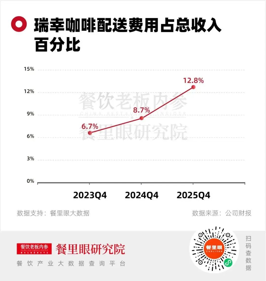瑞幸咖啡2025年財報數(shù)據(jù)顯示,四季度瑞幸運(yùn)營費(fèi)用占凈收入的比例同比提升4.1個百分點(diǎn),主要由于外賣訂單增加導(dǎo)致配送費(fèi)用上升,配送費(fèi)用16.31億元,同比暴漲94.5%,同時在去年下半年,瑞幸咖啡連續(xù)兩個季度凈利潤下滑。