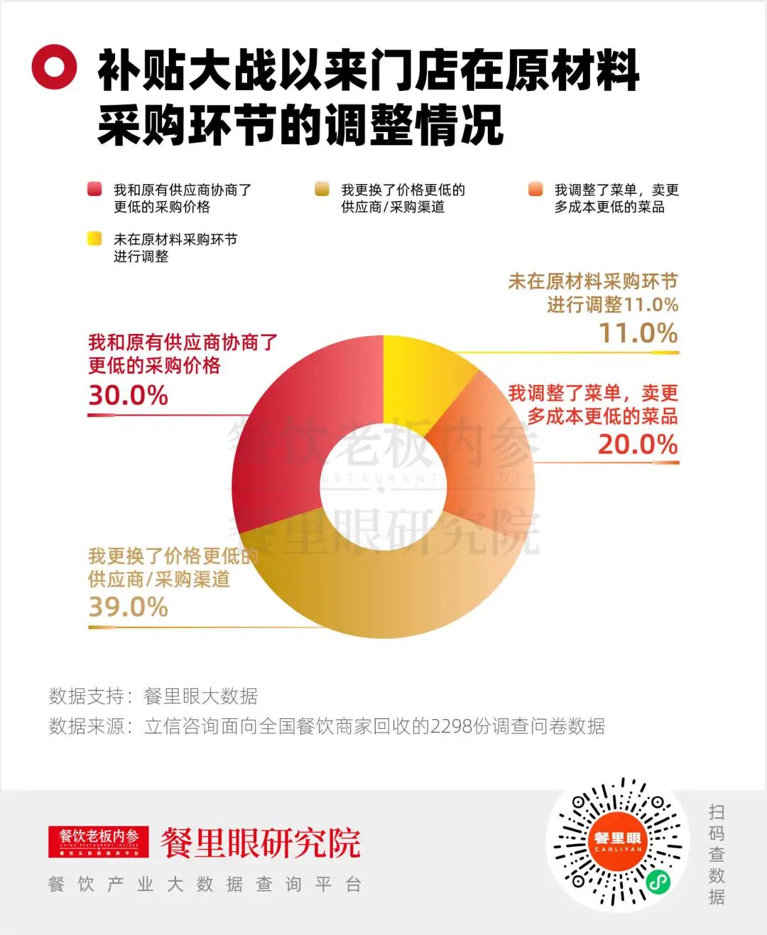 立信咨詢數(shù)據(jù)顯示,補(bǔ)貼大戰(zhàn)以來,39%的商戶開始更換原材料價格更低廉的供應(yīng)商,30%強(qiáng)化與供應(yīng)商的議價博弈,20%選擇增加低成本菜品占比。