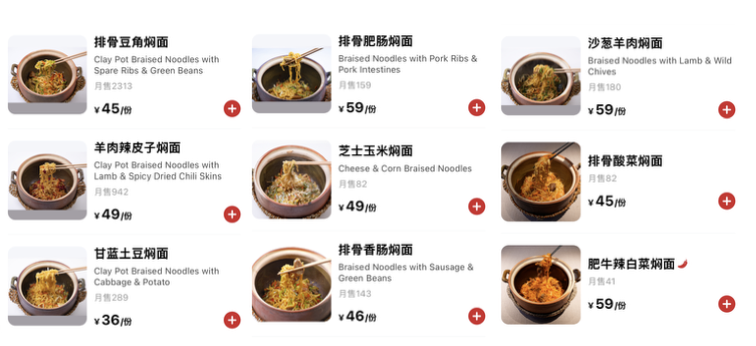 除砂鍋燜面外,門(mén)店還提供4款砂鍋湯面,共同構(gòu)建大碳水矩陣。