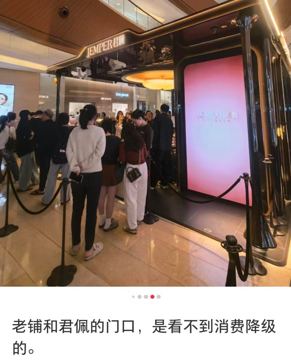 例如在一眾國(guó)際奢牌中引人注意的中國(guó)品牌君佩。據(jù)界面新聞報(bào)道,君佩每月單店坪效可達(dá)8000萬(wàn)元左右,緊追老鋪黃金主力店月坪效水平,接近甚至超過(guò)許多國(guó)際奢牌店效。