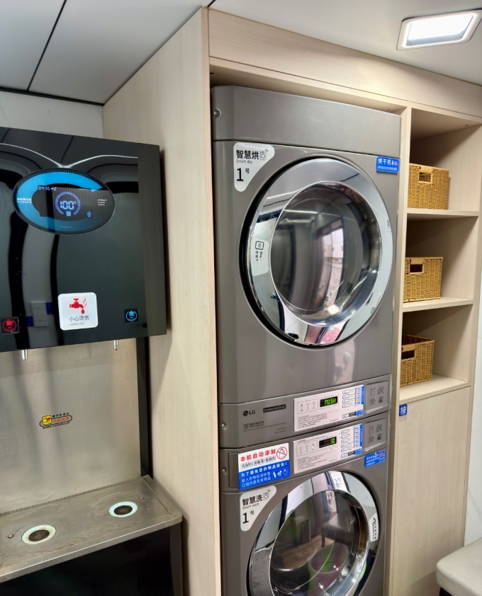針對司機(jī)群體的核心痛點(diǎn),他們?nèi)Υ蛟臁八緳C(jī)之家”。免費(fèi)淋浴間配備漢斯格雅等高端衛(wèi)浴,免費(fèi)洗衣房配備LG自助洗衣機(jī),還有免費(fèi)休息室(按摩座椅)、免費(fèi)簡餐區(qū)、免費(fèi)熱水、應(yīng)急醫(yī)藥箱……一位正在加油的長途貨車司機(jī)感慨:“感覺這兒像家一樣,可以洗熱水澡,可以洗衣服,還能吃口熱乎飯,關(guān)鍵還免費(fèi),”