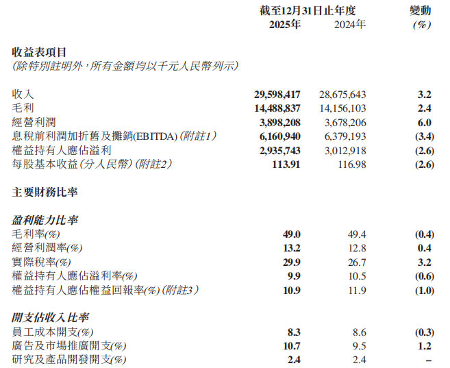 2025年,公司營(yíng)業(yè)收入同比提高3.2%至295.98億元;歸母凈溢利29.36億元,保持9.9%的凈利率。盈利指標(biāo)上,李寧公司毛利率同比下降0.4個(gè)百分點(diǎn)至49%;權(quán)益持有人應(yīng)占權(quán)益回報(bào)率同比下降1個(gè)百分點(diǎn)至10.9%。