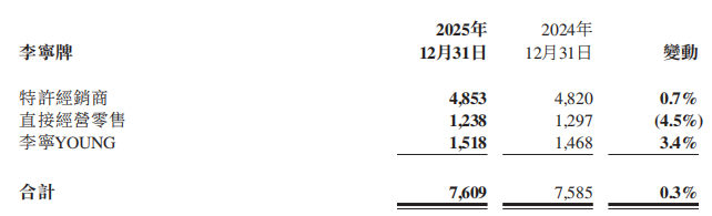 門(mén)店數(shù)上,截至2025年12月31日,李寧總銷(xiāo)售點(diǎn)數(shù)量?jī)粼黾?4家至7609家。在線下消費(fèi)不振的情況下,公司在上一年度關(guān)閉了59家直營(yíng)門(mén)店。為了優(yōu)化經(jīng)營(yíng)效率,在高層級(jí)市場(chǎng)加強(qiáng)了奧萊渠道的建設(shè)。
