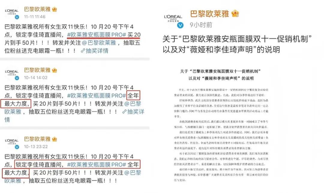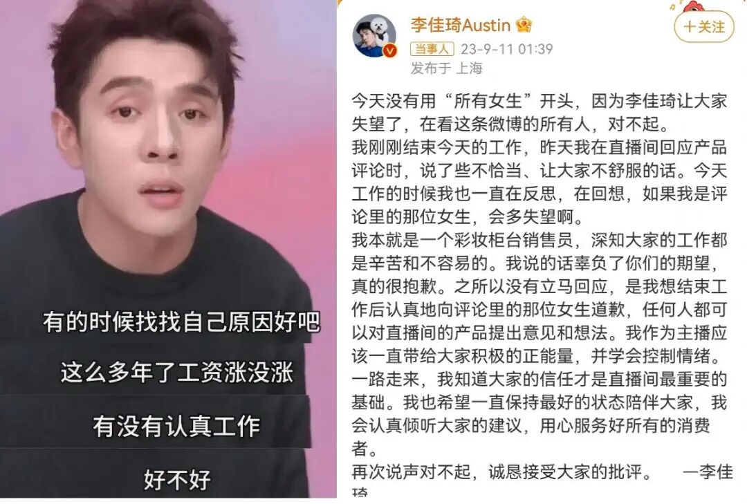 李佳琦直播截圖和道歉微博 來源:網(wǎng)絡