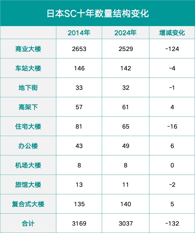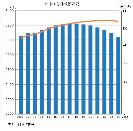 2025年1月1日以后,日本SC的定義標(biāo)準(zhǔn)有修訂。主要內(nèi)容是:由開發(fā)商策劃開發(fā)的具備以下條件的商業(yè)設(shè)施:一是零售店鋪面積在1000㎡以上;二是租戶數(shù)量在10個(含)店鋪以上;三是最大店鋪面積不超過整體SC面積的80%。除了最大店鋪以外,其他零售店鋪在1000㎡以上的不受此限制;四是統(tǒng)一規(guī)劃廣告推廣和促銷活動。主要修改內(nèi)容是修改前的對比規(guī)模是1500㎡;蛟S受此影響,2025年當(dāng)期統(tǒng)計數(shù)據(jù)暫未公示。