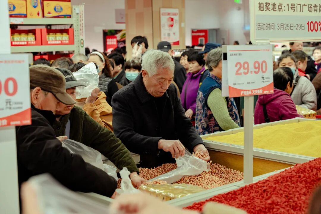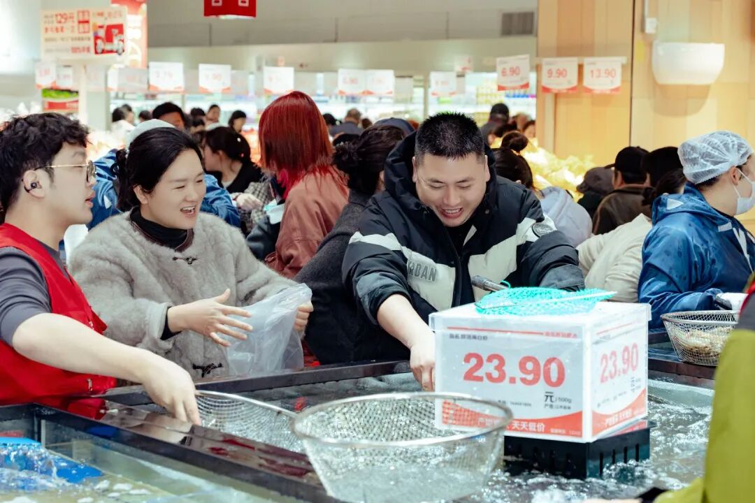 開業(yè)當(dāng)日現(xiàn)場(chǎng)人氣爆棚,門店主打“本地特色+全國(guó)爆品”的極致性價(jià)比組合,迅速吸引大量市民到店打卡。近5000平米的賣場(chǎng)內(nèi)人頭攢動(dòng),收銀臺(tái)前早早排起長(zhǎng)龍,熱鬧程度遠(yuǎn)超普通商超開業(yè)水平。此前周末舉辦的直采肉品節(jié)已吸引數(shù)千人參與體驗(yàn),為正式開業(yè)積攢了極高的人氣勢(shì)能。