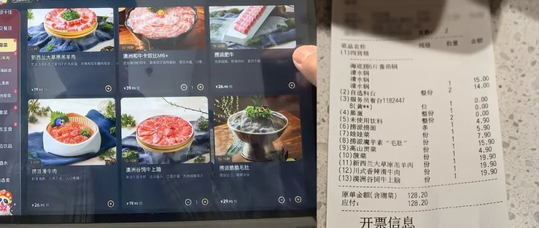 2個(gè)人128元就能吃得不錯(cuò),而標(biāo)準(zhǔn)店的人均消費(fèi)仍在百元上下。