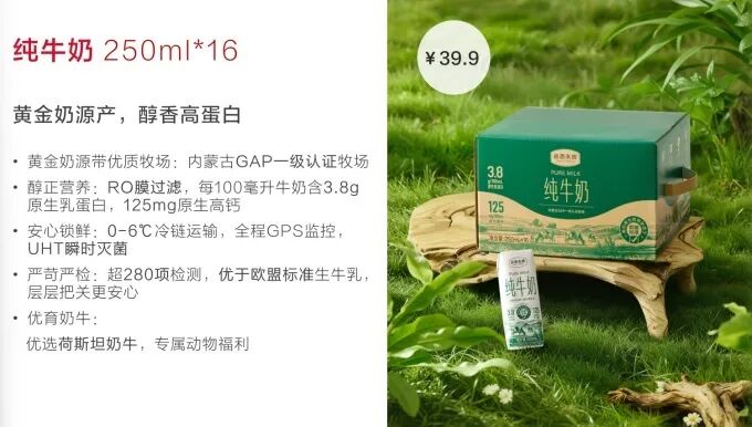 比方說(shuō),這款醬油是千禾幫我們做的,大家知道特級(jí)醬油是0.9%氨基酸態(tài)氮含量,但我們做到了1.1%。另外,280天的釀造周期,市場(chǎng)上一般在120天、160天、180天,我們是280天。第三個(gè)是配料表,醬油里面只有水、鹽、糖、非轉(zhuǎn)基因大豆、小麥,沒(méi)有任何添加劑。這樣的品9塊9/升,在品質(zhì)上面做的非常棒,三個(gè)點(diǎn)就是非常核心的UVP(獨(dú)特的價(jià)值主張),這個(gè)獨(dú)特性要對(duì)顧客帶來(lái)價(jià)值。