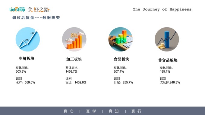 我們明確了調(diào)改的三大核心投入方向:第一提升商品力,優(yōu)化選品結(jié)構(gòu),提升商品周轉(zhuǎn)效率;第二優(yōu)化顧客服務,提升服務體驗,增強顧客粘性與滿意度;第三加強員工關愛,激活團隊活力,打造幸福團隊。