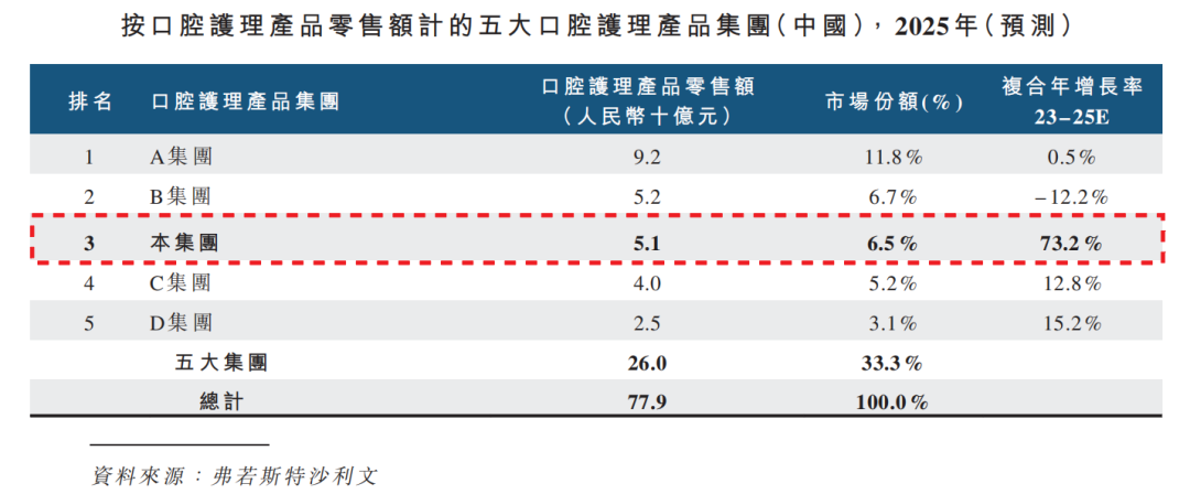 如今的參半,已是口腔護(hù)理行業(yè)不可忽視的新銳力量。以2025年的零售額計(jì),參半以6.5%的市場份額位列行業(yè)第三,線上市場份額達(dá)8.0%,位居第一。