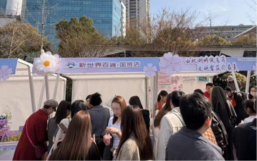 3月13日,2026“浪漫武漢 一路生花”賞櫻季開幕式在西北湖舉行,作為主會場的核心商業(yè)體之一,新世界百貨武漢國貿(mào)店門口的“春日追花”市集成為全場人氣焦點。