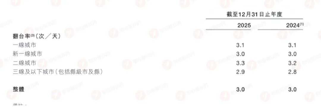 翻臺(tái)率上能夠直觀看到公司運(yùn)營(yíng)效率的提升,在行業(yè)翻臺(tái)率普遍下降的當(dāng)下,小菜園整體的翻臺(tái)率依舊維持在3.0次/天,與2024年持平,且二線、三線及以下城市翻臺(tái)率均有所提升。