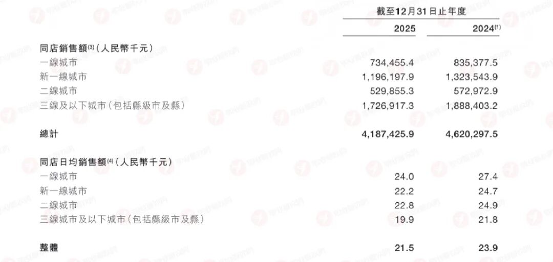 但同店日均銷售額卻出現(xiàn)明顯下滑