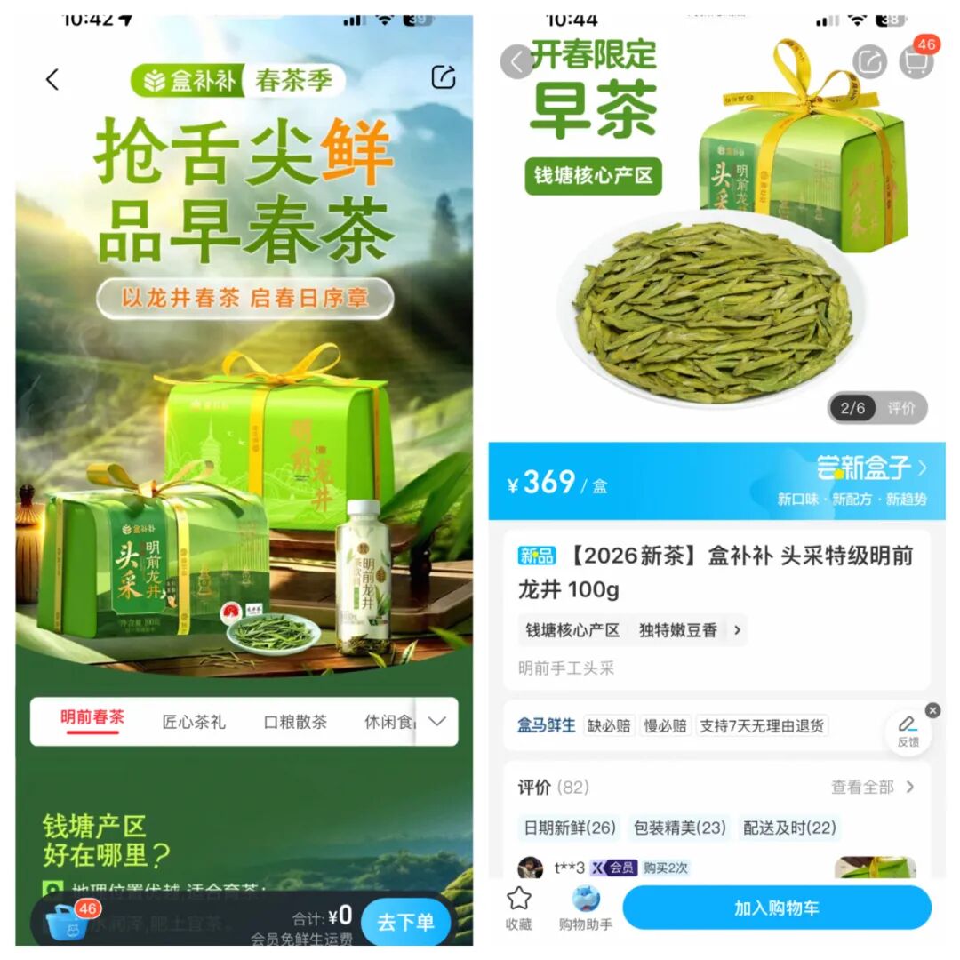 為了2026年這批“頭采明前龍井”,盒馬與供應(yīng)商藝福堂提前一年做產(chǎn)地布局,規(guī)劃了“當日采摘、當晚炒制、次日運輸”的48小時鏈路,直達全國門店。杭州的消費者,最快24小時就能把新茶拿到手。