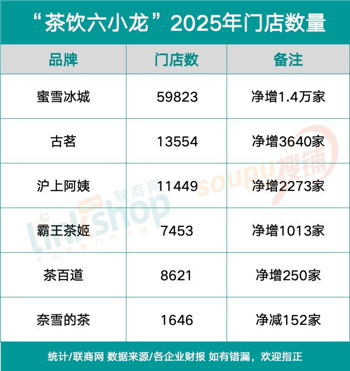 尤其是隨著蜜雪冰城、古茗、霸王茶姬、茶百道、滬上阿姨、奈雪的茶這六家上市企業(yè)2025年財(cái)報(bào)全部出爐,一幅冰火兩重天的行業(yè)版圖非常清晰地呈現(xiàn)在消費(fèi)者面前。