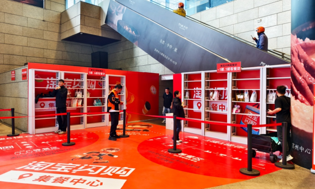 淘寶閃購設(shè)置規(guī)范化集單中心,將取送分為“場內(nèi)”與“場外”兩段。商場內(nèi)部,騎士專人專區(qū),使用靜音購物車“循環(huán)發(fā)車”。商場外部的騎士,到場后可即取即走。這種熟人模式下,將原本每位騎士都要進商場、爬樓梯的“重復(fù)勞動”,變成了專業(yè)化的分工協(xié)作。