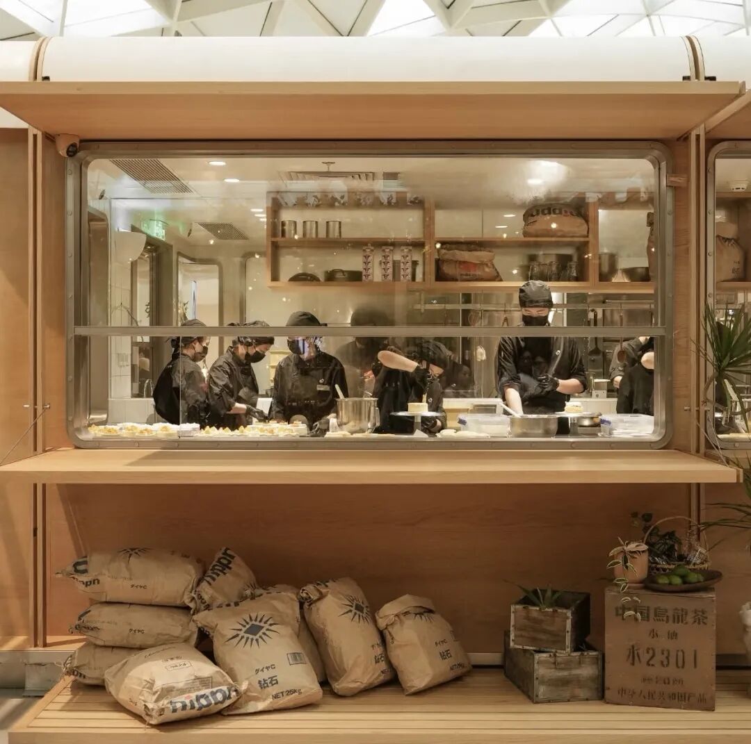 1、原木風+全透明廚房,蛋糕新鮮現(xiàn)做看得見