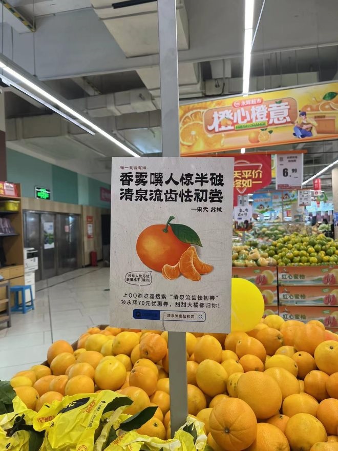 近日,上海永輝超市用與美食相關(guān)的古詩(shī)做成雙十一促銷(xiāo)文案,以詩(shī)詞譜寫(xiě)美味與詩(shī)意生活,弘揚(yáng)傳統(tǒng)文化,吸引了眾多網(wǎng)友紛紛前來(lái)打卡。