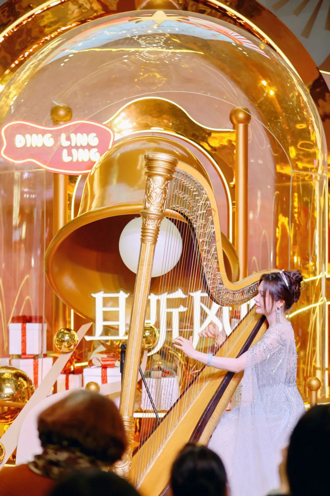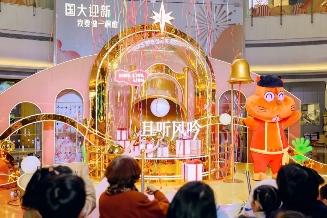 在現(xiàn)場(chǎng)顧客歡呼聲與掌聲中,國(guó)大自有IP「國(guó)大土播鼠」東東掌柜走上臺(tái),點(diǎn)亮了「風(fēng)鈴樹(shù)」,盧浮藝術(shù)的舞步和豎琴樂(lè)隊(duì)度琴聲讓「風(fēng)」有了「形狀」與「聲音」,也宣告著國(guó)大「我要做一棵樹(shù)」來(lái)到了第六季。