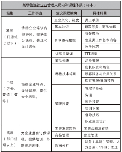事實(shí)上,企業(yè)缺乏的是對(duì)不同層次人才的培養(yǎng)機(jī)制,其中核心就是人才培訓(xùn)體系的建設(shè)。要解決零售業(yè)的人才缺失問題,就必須建立一套適合各企業(yè)自身實(shí)際情況的人才培訓(xùn)體系。