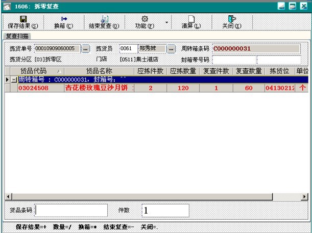 通過掃描復(fù)查平臺(tái)進(jìn)行拆零復(fù)查,揀貨錯(cuò)誤的,輔以管理措施,以提高揀貨準(zhǔn)確率和對(duì)門店的服務(wù)水平。
